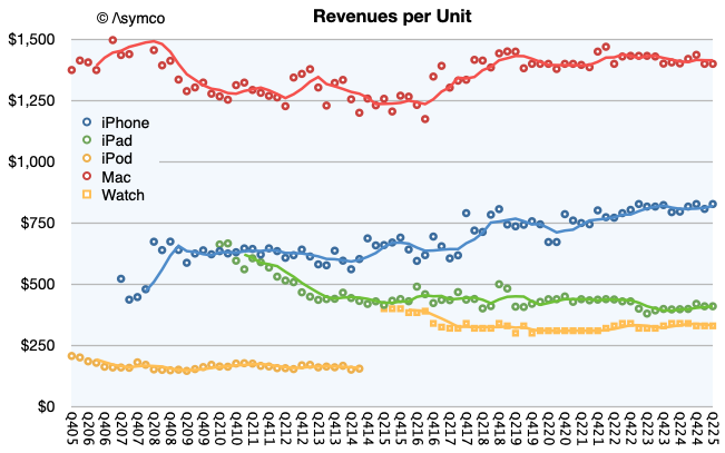 Again, excluding wearables, iPod touch, Apple TV and Apple Vision Pro we have these ratios: